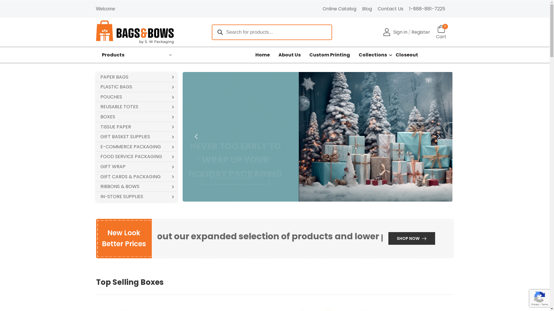 ပင်မထုတ်ကုန် - Bags & Bows သည် အိတ်များ၊ သေတ္တာများ၊ တစ်ရှူးစက္ကူ၊ ဖဲကြိုးများနှင့် လေးများအပါအဝင် လက်လီထုပ်ပိုးပစ္စည်းများကို ပံ့ပိုးပေးရာတွင် အထူးပြုပါသည်။