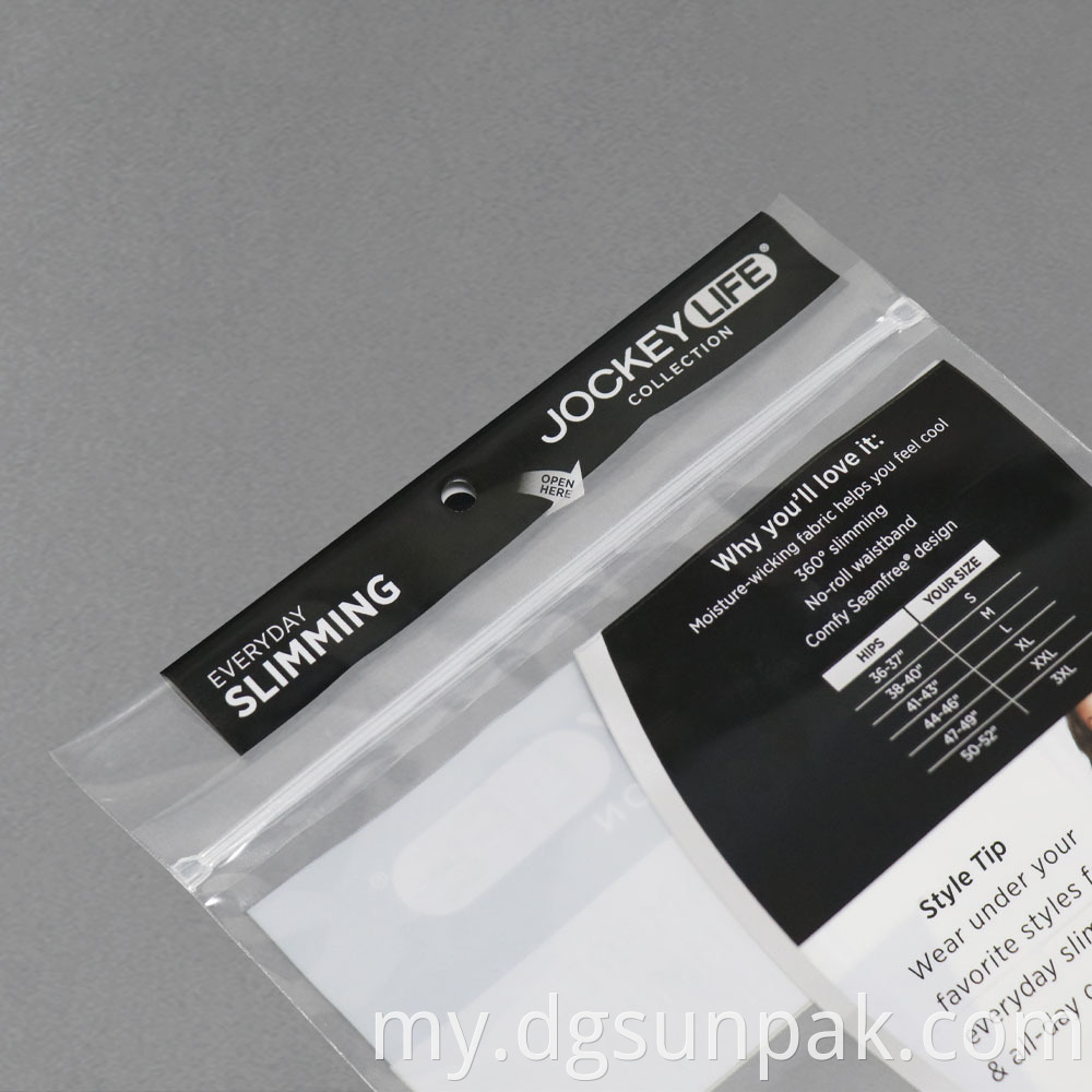 ထုတ်ကုန်အမည်: zipper lock bag with hang hole