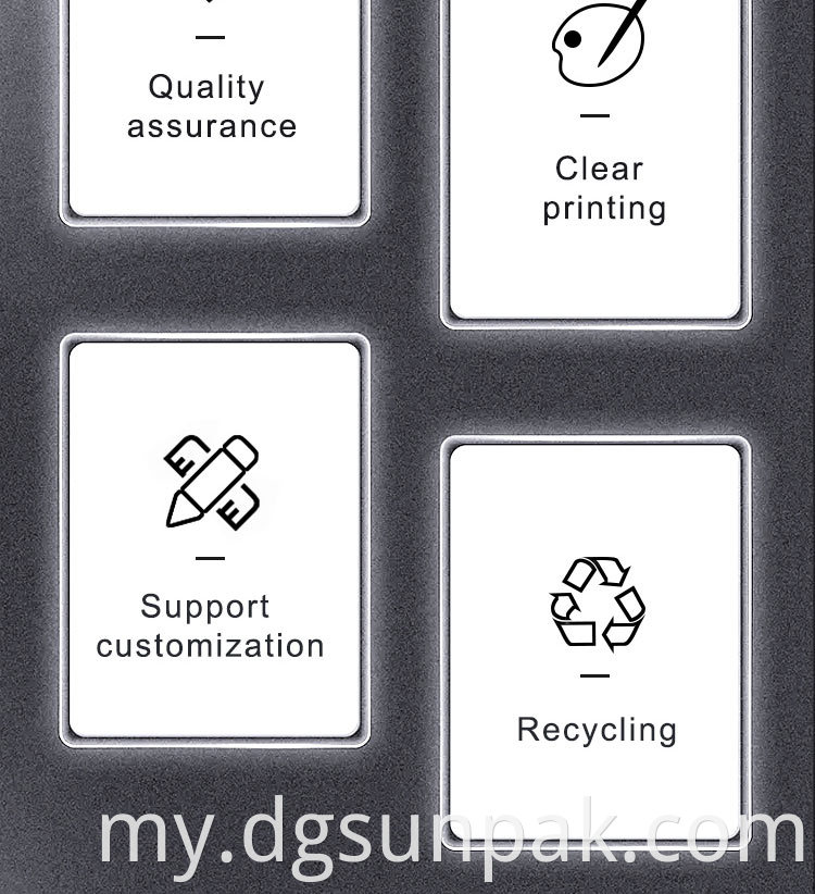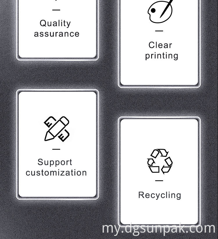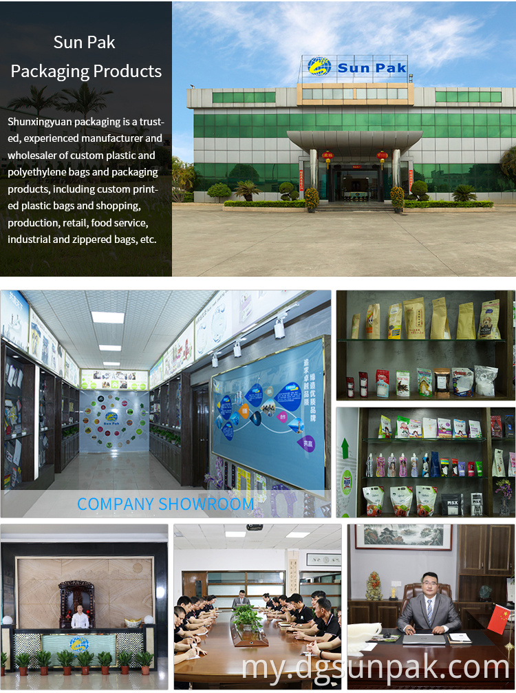 ကျွန်ုပ်တို့သည်စိတ်ကြိုက်အရွယ်အစားနှင့်ဒီဇိုင်းကိုလက်ခံရရှိသည်။ ကျွန်ုပ်တို့၏ထုပ်ပိုးထားသောအိတ်များအားလုံးကိုသင်၏အနုပညာလက်ရာများနှင့်ထုပ်ပိုးခြင်းများကို အခြေခံ. စိတ်ကြိုက်ပြုလုပ်သည်။