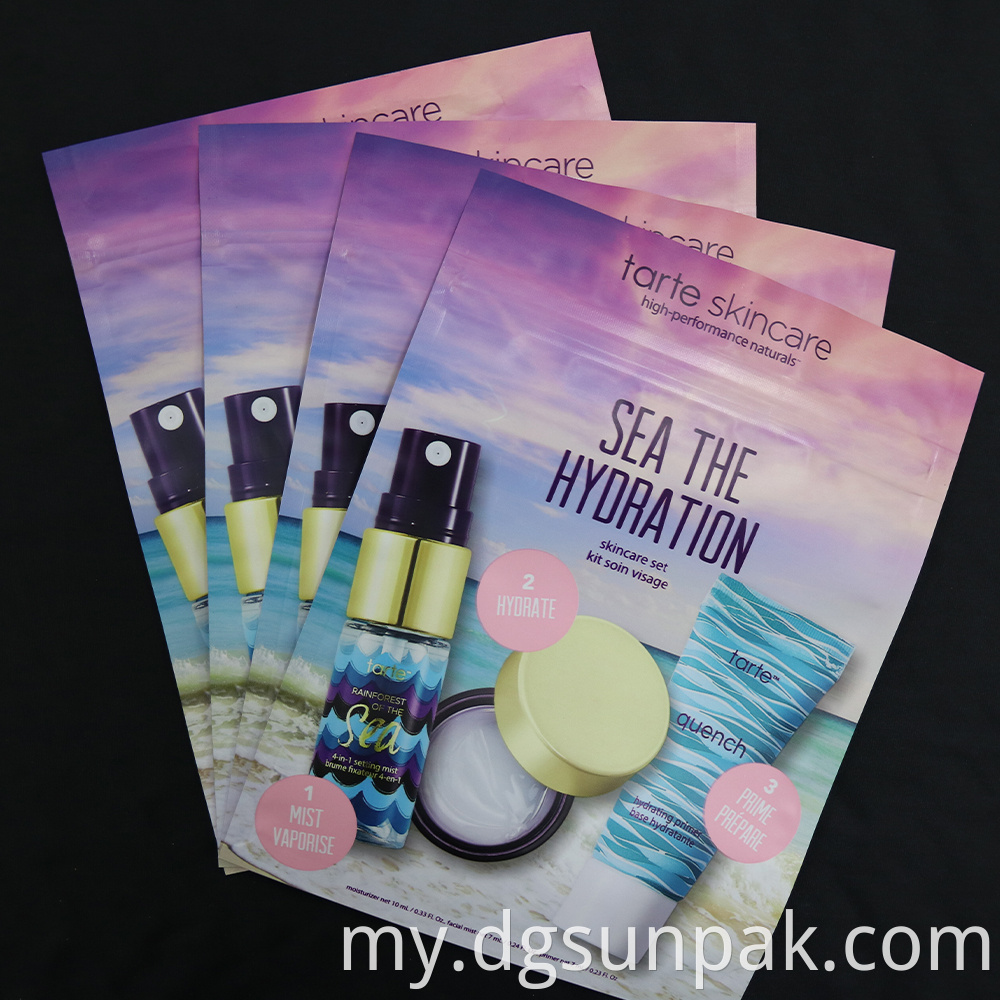 Dongguan Sun Pak Packing Product Ltd. မိတ်ကပ်ဖြီးအတွက်ထုံးစံ Mylar Ziplock အိတ်,ququisite အလှကုန်ထုပ်ပိုး laminated အိတ်,ပလတ်စတစ် resealealable zip သော့ခတ်မီးတောင် Mylar အိတ်