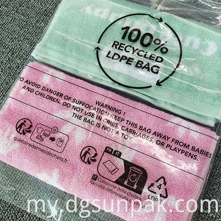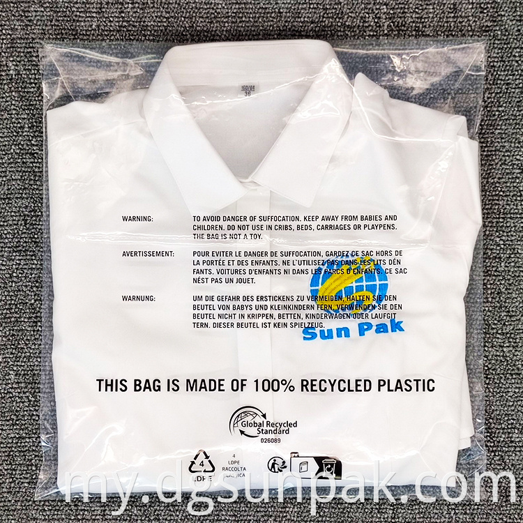 နေအိမ် > ထုတ်ကုန်များ > GRS Recycled အိတ် > Poly Bag > Clear Recycled အ 0 တ်အထည် Poly Bags ရှင်းလင်းသော Grs Polybag