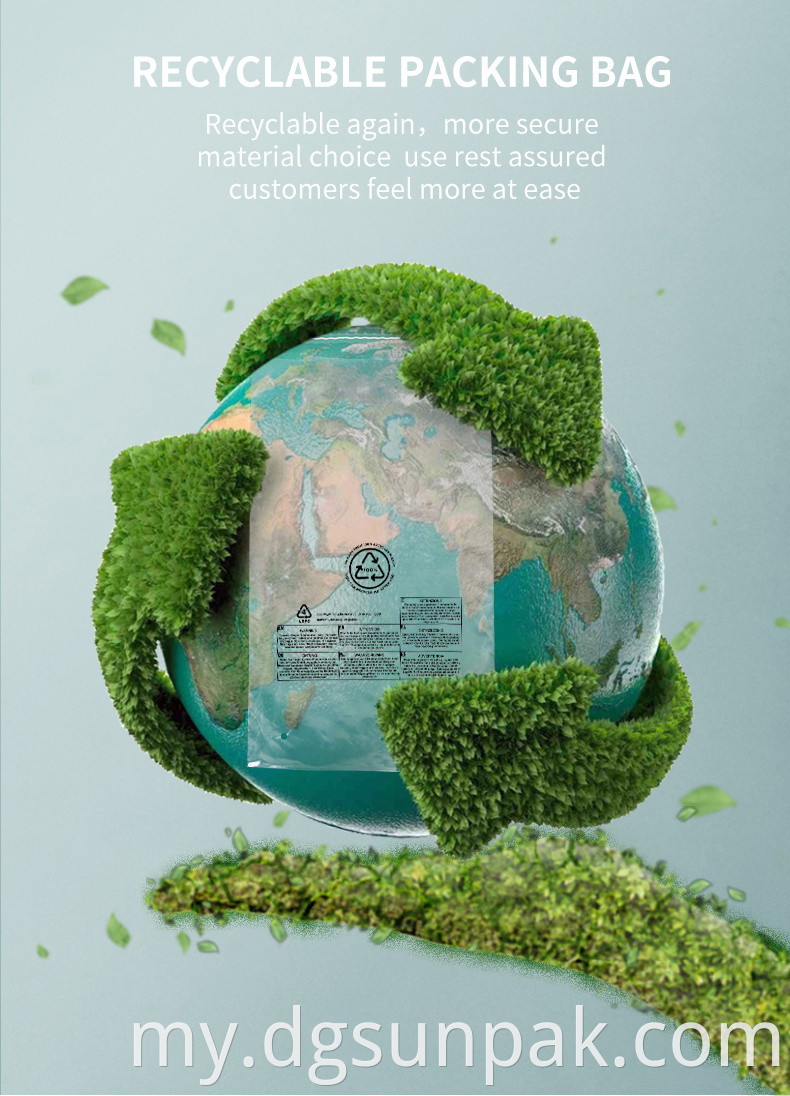 Dongguan Sun Pak Packing Product Ltd. 100% ပြန်လည်နေရာချထားသည့် Transparent Polybag LDPE အိတ်များ,100% ပြန်လည်အသုံးပြုရှင်းလင်းသော poly ထုပ်ပိုးအိတ်များ,Poly Bag သည် 50% 70% 100% ပြန်လည်အသုံးပြုသည်